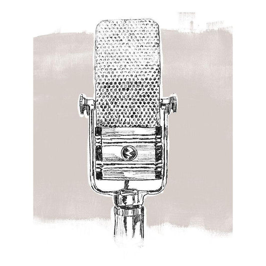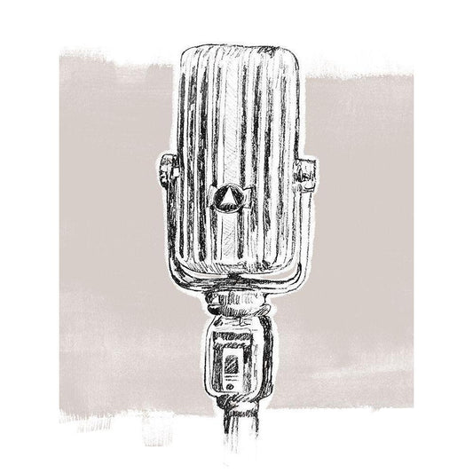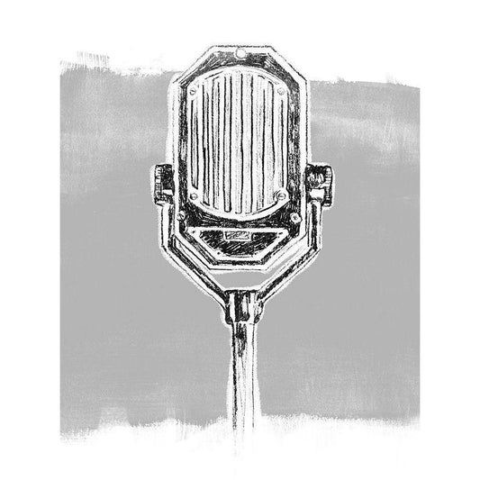 Monochrome Microphone I Black Modern Wood Framed Art Print with Double Matting by Vess, June Erica