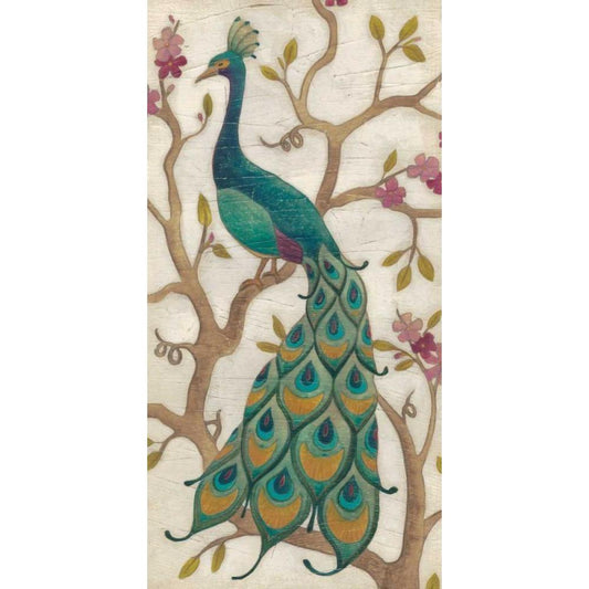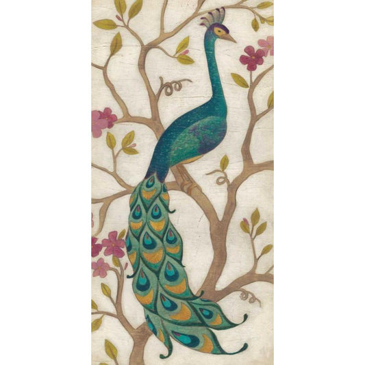 Peacock Fresco I Black Modern Wood Framed Art Print with Double Matting by Vess, June Erica