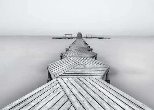The Pier White Modern Wood Framed Art Print with Double Matting by Garci, Xavier