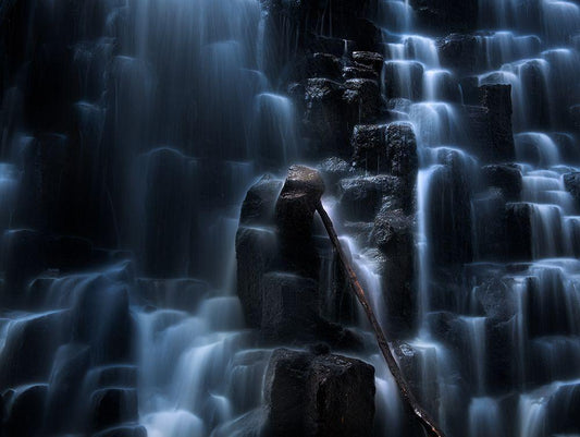 Secret Falls White Modern Wood Framed Art Print with Double Matting by Shi, Fei