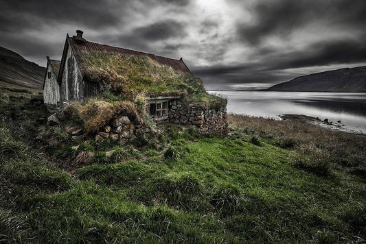 Turf And Stones White Modern Wood Framed Art Print with Double Matting by Ingibergsson, Bragi