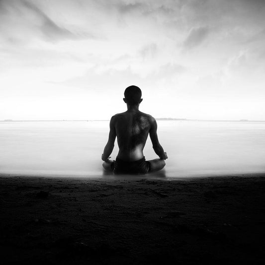 Meditasi White Modern Wood Framed Art Print with Double Matting by Alrasyid, Ajie