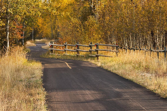 Bike path in autumn-Grand Teton National Park-Wyoming White Modern Wood Framed Art Print with Double Matting by Jones, Adam