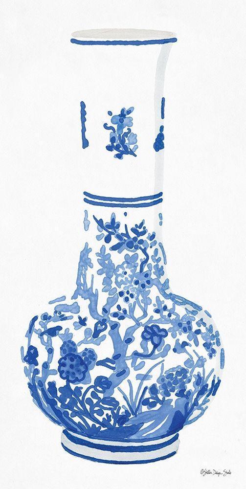 Blue and White Vase 2 White Modern Wood Framed Art Print with Double Matting by Stellar Design Studio