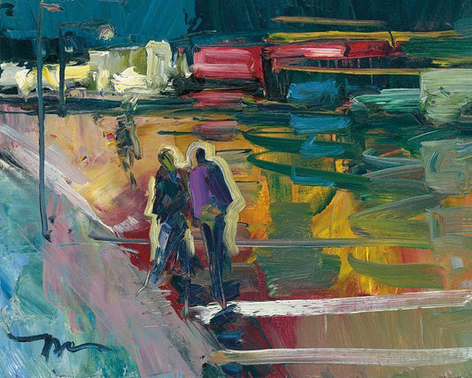 Night Stroll White Modern Wood Framed Art Print with Double Matting by Trujillo, Jose