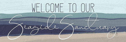 Welcome to Our Seaside Sanctuary White Modern Wood Framed Art Print with Double Matting by Rae, Marla