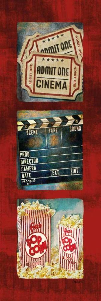 Admit One Movie Tryptic White Modern Wood Framed Art Print with Double Matting by Mollie B.