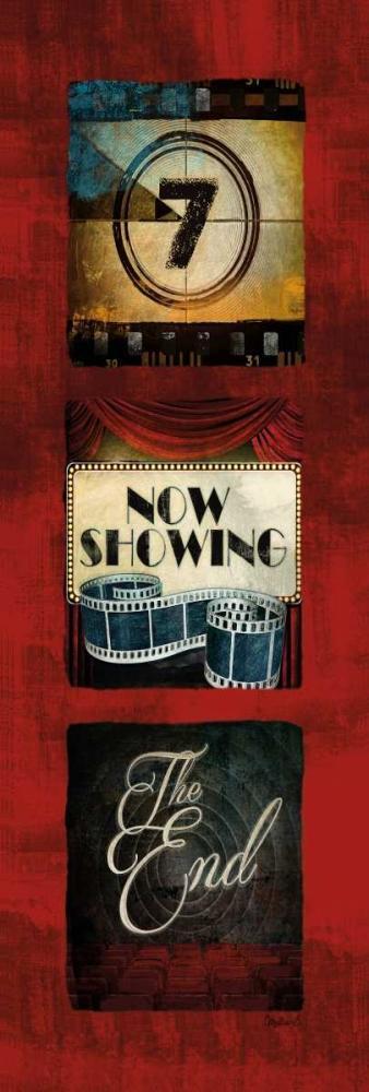 Now Showing Movie Tryptic White Modern Wood Framed Art Print with Double Matting by Mollie B.