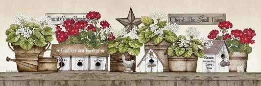 Geranium Shelf White Modern Wood Framed Art Print with Double Matting by Spivey, Linda