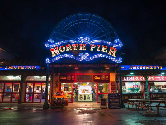 North Pier, Blackpool White Modern Wood Framed Art Print with Double Matting by Frank, Assaf