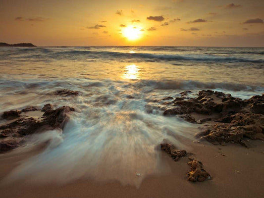 Sunset over Palmachim beach, Israel White Modern Wood Framed Art Print with Double Matting by Frank, Assaf