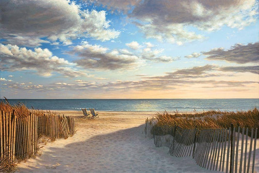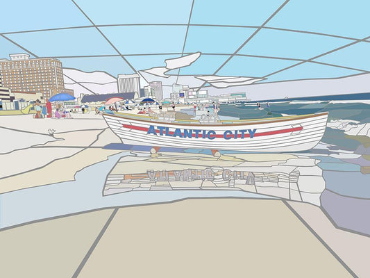 Atlantic City Beach Vista Scene White Modern Wood Framed Art Print with Double Matting by Mandell, Jonathan