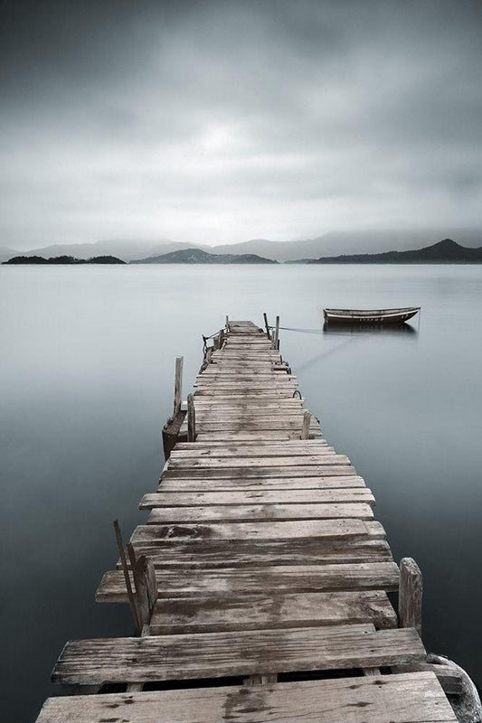 Peaceful Pier, Color White Modern Wood Framed Art Print with Double Matting by Anonymous
