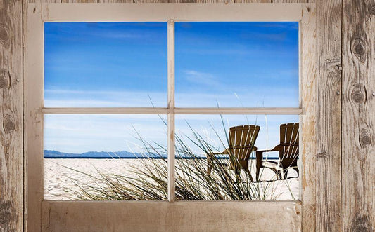 Window With a Beach View White Modern Wood Framed Art Print with Double Matting by Gould, Marilyn