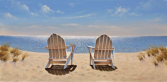Table on the Harbor White Modern Wood Framed Art Print with Double Matting by Saxe, Carol