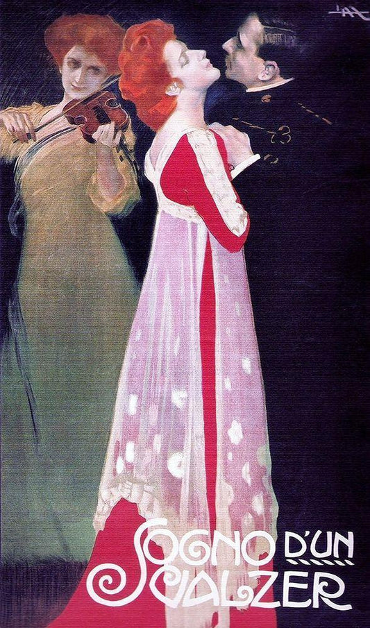 Sogno dun Valzer White Modern Wood Framed Art Print with Double Matting by Metlicovitz, Leopoldo