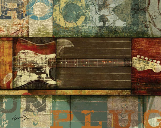 ROLL GUITAR White Modern Wood Framed Art Print with Double Matting by Yang, Eric