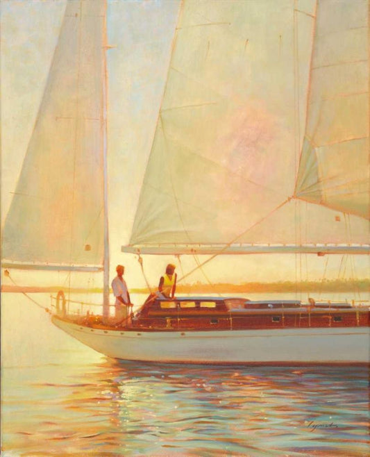 Sailing Sea 1 White Modern Wood Framed Art Print with Double Matting by Roko, Ken