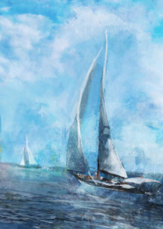 Sailing Sea 2 White Modern Wood Framed Art Print with Double Matting by Roko, Ken