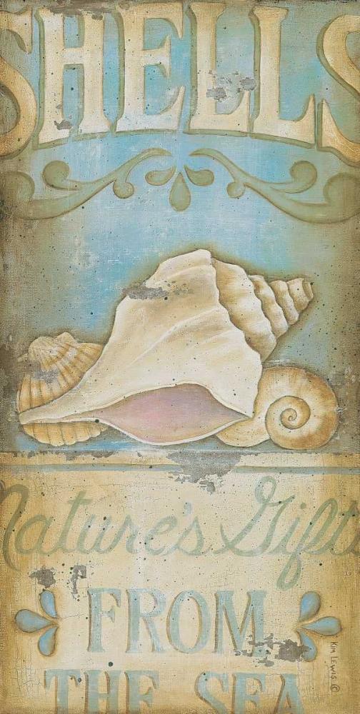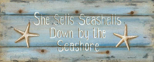 She Sells Seashells White Modern Wood Framed Art Print with Double Matting by Lewis, Kim
