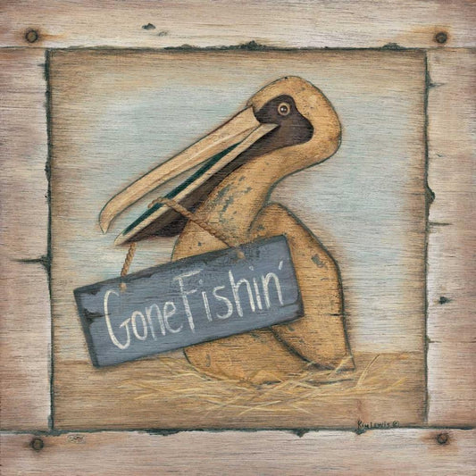 Gone Fishin White Modern Wood Framed Art Print with Double Matting by Lewis, Kim