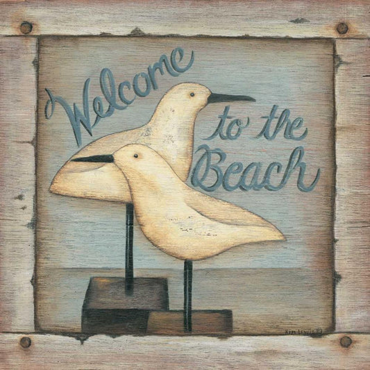 Welcome to the Beach White Modern Wood Framed Art Print with Double Matting by Lewis, Kim