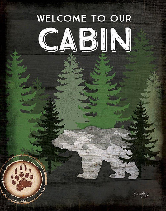 Welcome to Our Cabin White Modern Wood Framed Art Print with Double Matting by Pugh, Jennifer