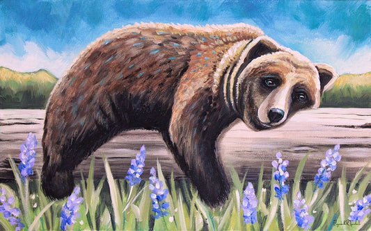 Bear on a Log White Modern Wood Framed Art Print with Double Matting by Tyndall, Elizabeth