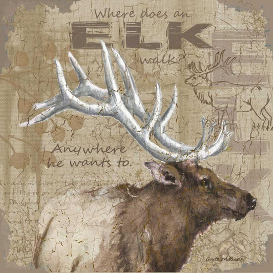 Where Does an Elk Walk White Modern Wood Framed Art Print with Double Matting by Phillips, Anita