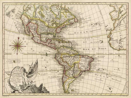 A New Map of America - 1769 White Modern Wood Framed Art Print with Double Matting by Vallet