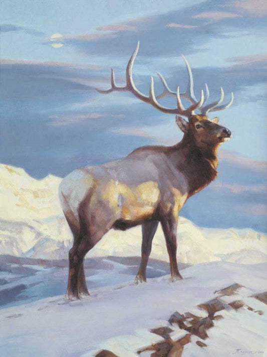Elk Foraging White Modern Wood Framed Art Print with Double Matting by Daniel, Kevin