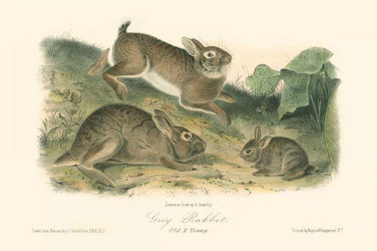 Grey Rabbit White Modern Wood Framed Art Print with Double Matting by Audubon, John James