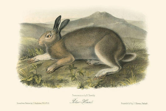 Polar Hare White Modern Wood Framed Art Print with Double Matting by Audubon, John James
