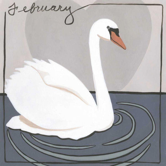 Avian February White Modern Wood Framed Art Print with Double Matting by Meagher, Megan