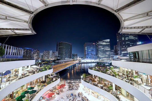 Yokohama White Modern Wood Framed Art Print with Double Matting by Hara, Tomoshi