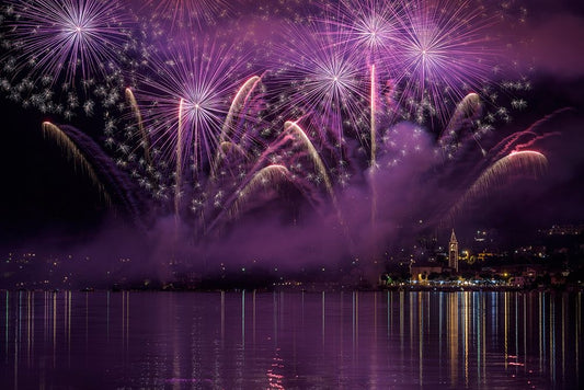 Fireworks Lake Pusiano White Modern Wood Framed Art Print with Double Matting by Marini, Roberto
