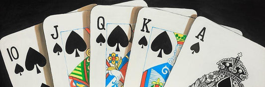 Spades Royal Flush Closeup White Modern Wood Framed Art Print with Double Matting by Atelier B Art Studio