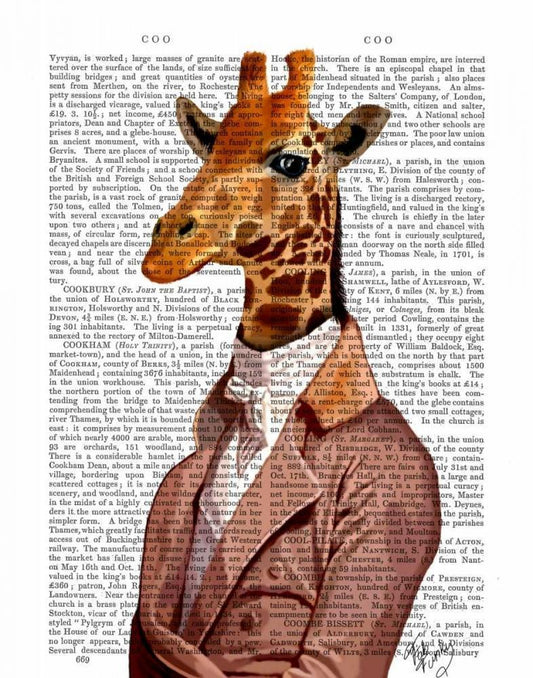 Multicoloured Giraffe White Modern Wood Framed Art Print with Double Matting by Fab Funky