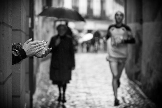 Enjoying A Rainy Day White Modern Wood Framed Art Print with Double Matting by Devos, Delphine