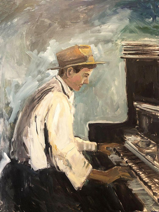 Piano Blues III White Modern Wood Framed Art Print with Double Matting by Stevens, Allayn