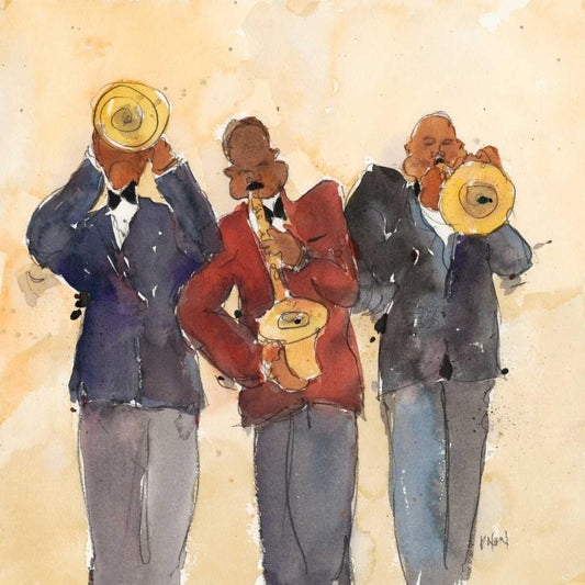 Jazz Trio I White Modern Wood Framed Art Print with Double Matting by Dixon, Samuel