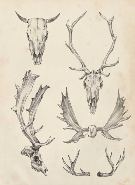 Skull and Antler Study I White Modern Wood Framed Art Print with Double Matting by Harper, Ethan