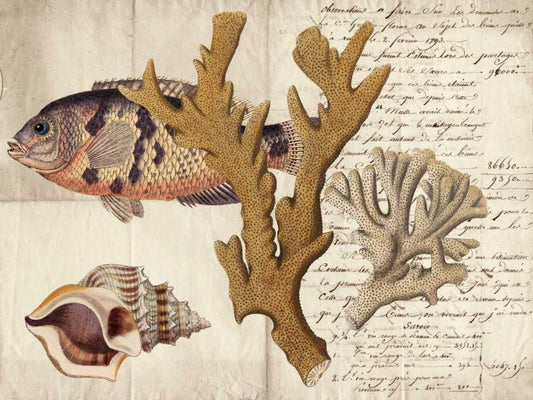 Sealife Journal I White Modern Wood Framed Art Print with Double Matting by Vision Studio