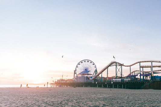 Santa Monica Pier White Modern Wood Framed Art Print with Double Matting by Marshall, Laura