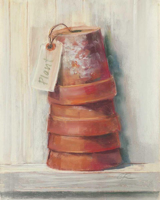 Terracotta Pots White Modern Wood Framed Art Print with Double Matting by Rowan, Carol
