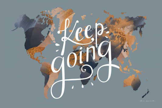 Keep Going World Map White Modern Wood Framed Art Print with Double Matting by Escalante, Omar