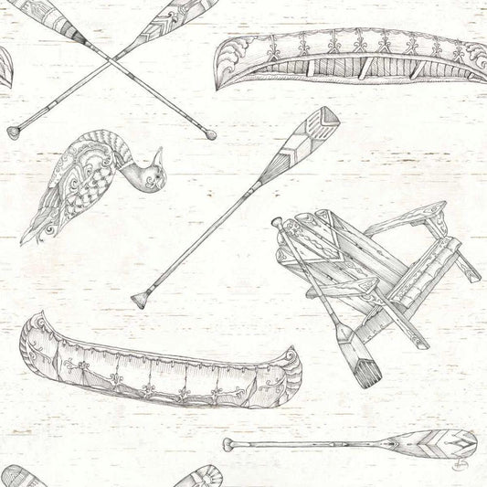 Lake Sketches Pattern IA White Modern Wood Framed Art Print with Double Matting by Brissonnet, Daphne