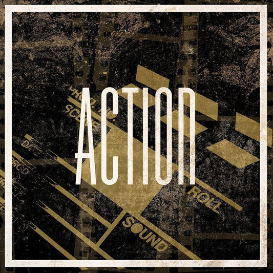 Lights Camera Action I White Modern Wood Framed Art Print with Double Matting by SD Graphics Studio