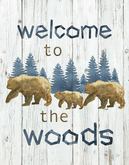 Welcome to the Woods White Modern Wood Framed Art Print with Double Matting by Nan