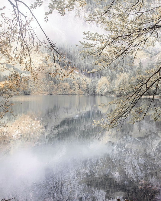 Misty Lake White Modern Wood Framed Art Print with Double Matting by Weisz, Irene